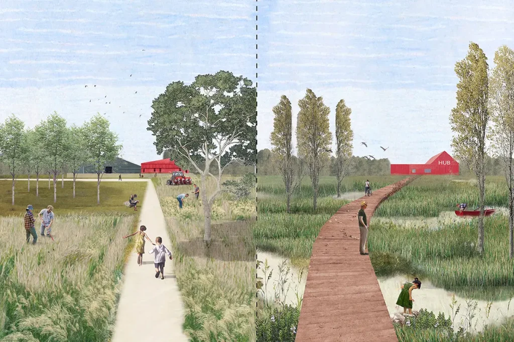 De ruimtelijke inrichting van de Drents-Overijsselse hoogveenontginningen kan gezondheidsachterstanden verkleinen en trots en verbondenheid versterken. Hardnekkige achterstanden ontstonden door zware turfwinning, lage lonen en een geïsoleerd landschap, die doorwerken in zorgarmoede, beperkte mobiliteit en een vergrijzende landbouw. Het voorstel koppelt landbouwtransitie aan gezondheid en gemeenschap via biobased teelten, vernatting van veengronden en nieuwe lokale werkgelegenheid. Op strategische plekken ontstaan sociale biobased zorg-hubs: multifunctionele centra waar zorg, wonen, onderwijs, ontmoeting en biobased productie samenkomen. Ze vormen het hart van natuurgedreven coöperaties met gedeelde verantwoordelijkheid en vrijwillige deelname. Door esdorpenprincipes opnieuw te interpreteren – met de hub als moderne brink en biobased productie als hedendaagse es – wordt het landschap een drager van gezondheid, geluk, korte afstanden, sterke sociale netwerken en toekomstperspectief.