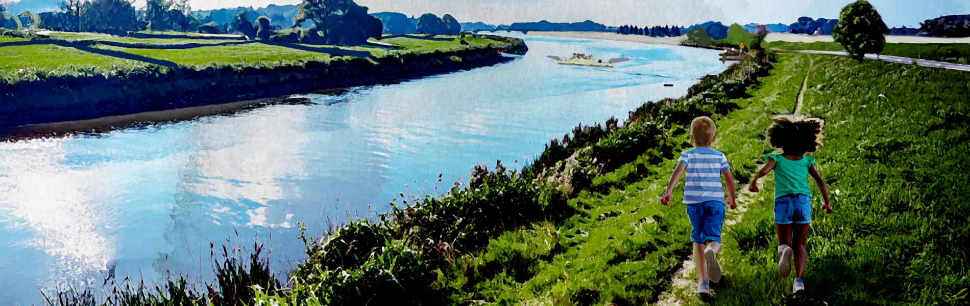 Het landschap vormt de basis van dit leven. Rivierarmen, oeverwallen, broekbossen en kwelmoerassen zijn hersteld en geven de vallei haar oorspronkelijke kracht en identiteit terug. Vrijstromende beken slingeren door het landschap en zorgen niet alleen voor biodiversiteit en waterveiligheid, maar ook voor plekken van ontspanning en ontmoeting.
